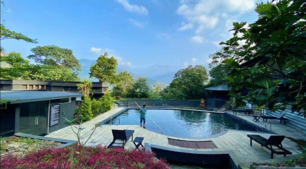 The resort offers spacious deluxe double occupancy rooms and various luxury rooms, all featuring a host of modern amenities complemented by scenic views of the surrounding natural landscape. The rooms are designed for ultimate guest comfort, featuring private balconies that allow for personal appreciation of the view, essential kitchen appliances, modern Western toilets, and walk-in showers. Thoughtful additions include an air purifier and 24-hour hot and cold running water. Guests are provided with complimentary toiletries, a tea/coffee maker, mineral water, an electronic safe, and fresh towels. The provision of services like bellboy service, concierge, housekeeping, luggage storage, and assistance ensures a smooth and effortless stay for all patrons.