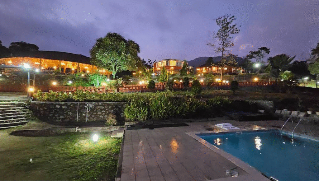 The resort provides comfortable and cozy accommodations primarily consisting of six snug huts, ensuring an intimate and personalized stay experience. The design aesthetic emphasizes warmth, particularly in the rustic-themed lobby, which exudes a welcoming ambiance immediately upon arrival. The resort provides various types of rooms to cater to different guest needs, including double, family, and twin/double configurations. For guest convenience, all accommodations offer essential facilities such as a safety deposit box, an electric kettle, a dining table, and a clothes rack. Many rooms are strategically positioned to offer spectacular pool view or mountain view perspectives, allowing guests to fully immerse themselves in the surrounding beauty.