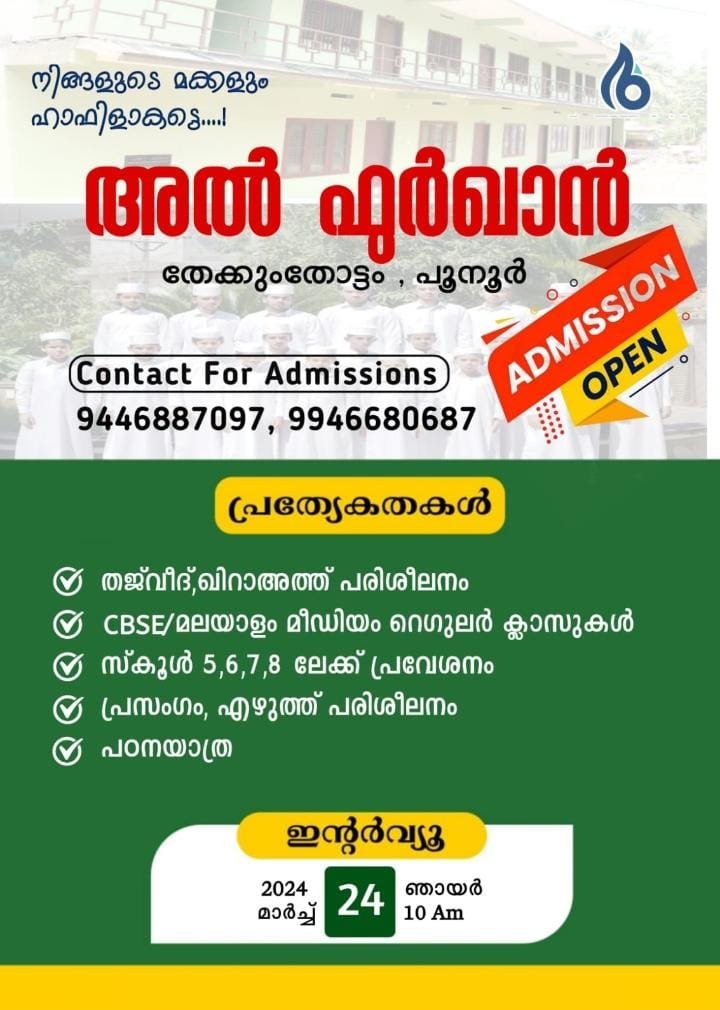 .2024-25 അഡ്മിഷൻ ഇൻ്റർവ്യൂ മാർച്ച് 24 ഞായർ