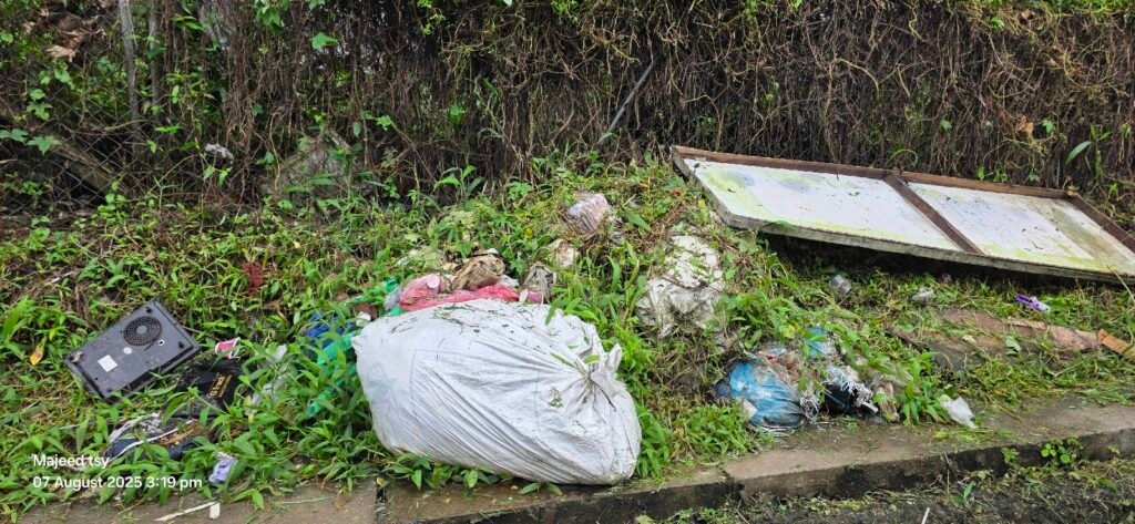 In Thamarassery, sacks of garbage have been dumped on a pedestrian footpath near the Chungam junction, obstructing walkers. Ironically, the spot is just meters away from a “Garbage-Free Panchayat” sign. Locals are urging strict action against the offenders.