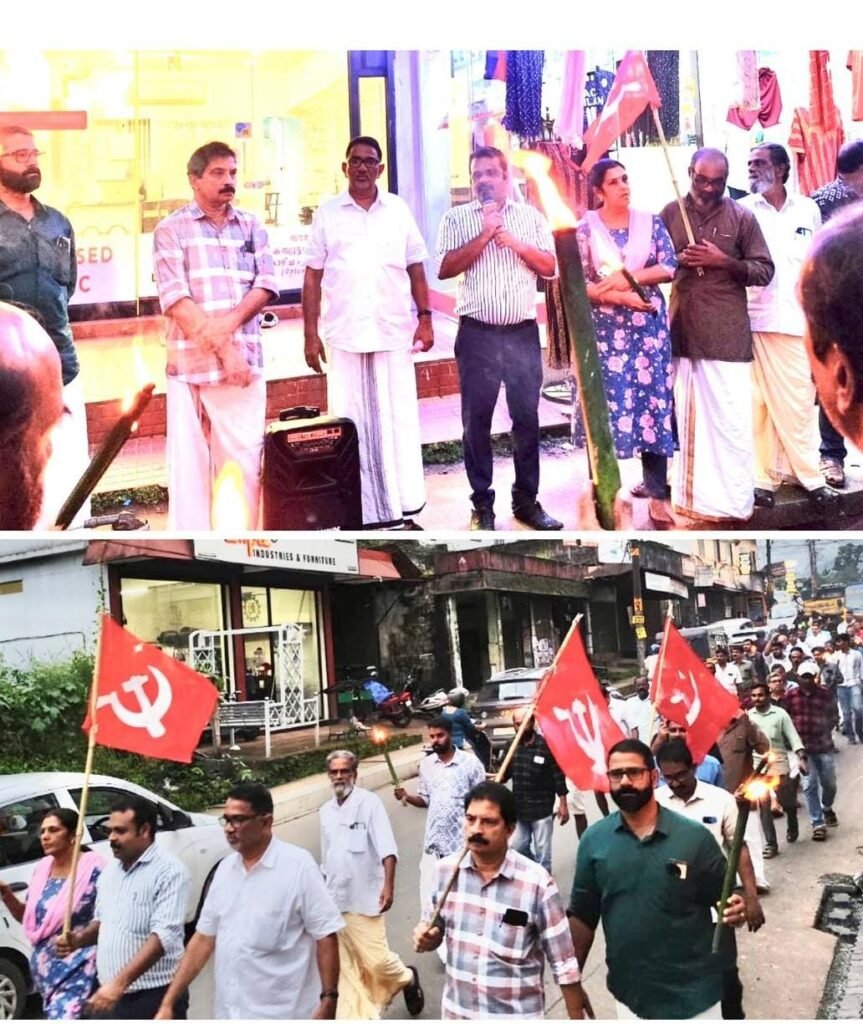 The CPM held a protest march and public meeting in Thiruvambady against the BJP government’s action of jailing two nuns who were attacked in Chhattisgarh. The event was led by local and area committee leaders.